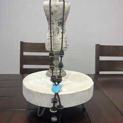 Vintage Boho Black Wood Bead Necklace Turquoise Blue Heart Pendant Multi-Color$25Miami, FL