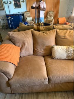 Thomasville Club Arm Chair With Matching Ottoman On Wheels Brocade Vintage Beige $95Boca Raton, FL
