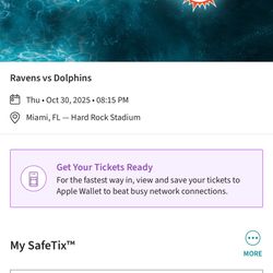 Dolphins Ravens tickets$250Fort Lauderdale, FL