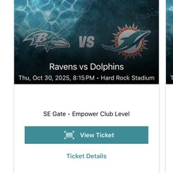 Dolphins vs Ravens Tickets$200Fort Lauderdale, FL