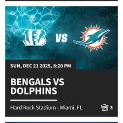 2 Cincinnati Bengals @ Miami Dolphins Sideline Passes Tickets Free Drinks 12/21/25$300Miami, FL