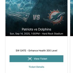 Dolphins Vs. Patriots 9/14$80Miami, FL