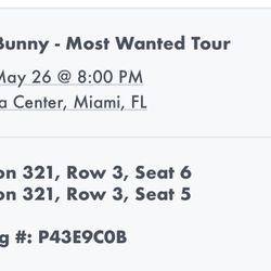 Bad Bunny Tickets For most wanted Tour$300Miami, FL