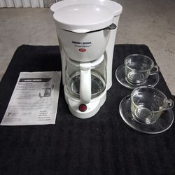 NEW NEVER BEEN USED, "BLACK AND DECKER" SMART BREW 6 CUPS COFFEE MAKER WITH TWO ANTIQUE GLASS CUPS WITH SAUCERS MADE BY "MEXICO 20" PRICED TO SELL!!!$12Oakland Park, FL