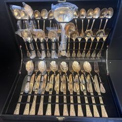 Set Gold Plated Flatware Silverware China In Case service for 12$20Medley, FL