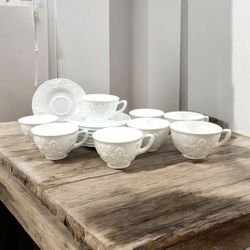 Vintage MCM Milk Glass Grape Cups & Saucers Set of 8 USA - Collectible$129Fort Lauderdale, FL