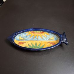 Vintage Mexican Folk Art Fish Plate In Vivid Colors, Mexican Talavera Perfect To Serve A Fish Side Dish 9.5" X 5"$7Fort Lauderdale, FL