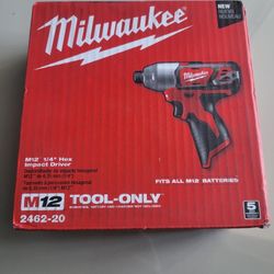 Milwaukee M12 12V Lithium-Ion Cordless 1/4 in. Hex Impact (Tool-Only)$70Dania Beach, FL