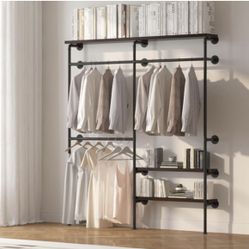Industrial Pipe Wall Clothes Rack w/Shelves – 70.8” Black Heavy Duty$110Hialeah, FL