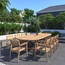 BRAND NEW Extendable Oval Deluxe Outdoor Furniture 11 Piece 100% FSC Certified Teak Wood Dining Set