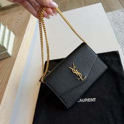 Authentic Saint Laurent YSL Flap Chain Wallet Black Grain De Poudre Leather Gold Hardware$1,100Homestead, FL
