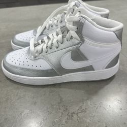 New/ Never worn • Nike Court Mid Sneaker Shoes • White & Silver • Womens Sz 8 / Boys Sz 6$85Miami, FL