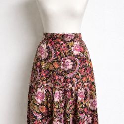 Joie 100% Linen Floral Midi Skirt Elastic Waist Boho Size M$20Halndle Bch, FL