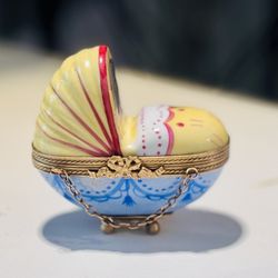 Limoges SIGNED by Rochard Trinket Box "Baby Bassinet Carraige" Made In France$125Oakland Park, FL