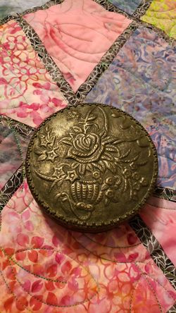 Antique Metal Relief Powder Dresser Vanity Jar Jewlery Box with Mirror$35Biscayne Park, FL