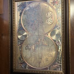 Framed World Map- Silver Gold Foil Old Double Hemisphere Map Orbis Terrarum Illustratus 40x30$75Miami, FL