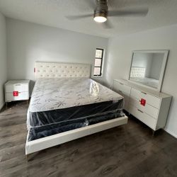 White Bedroom Set 😍 4 Pcs Bed Set King Set New$745Oakland Park, FL
