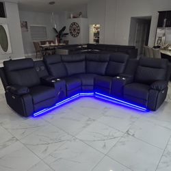 SECTIONAL GENUINE LEATHER RECLINER ELECTRIC BLACK COLOR.. 💥✅🚛DELIVERY SERVICE AVAILABLE ✅💥🚛$899Hollywood, FL