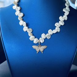 Handmade Pearl Necklace with Heart Pendant & Butterfly Beads – Adjustable Length$35Aventura, FL