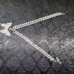Silvertone Hip-Hop Style Cuban Link Choker Necklace With Rhinestone Butterfly Charms 12" W/3 Extra Inches Of Chain$5Fort Lauderdale, FL