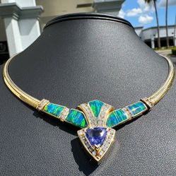 Antique Jewelry 14k solid yellow gold butterfly opal natural diamond tanzanite 25.00CTW necklace chain 16.00" 8.00mm width$8,000Pompano Beach, FL