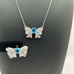 High Quality Blue Butterfly Necklace Chain & Earring Set For Female$100Pompano Beach, FL