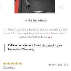 JL Audio Subwoofer Stealth box For 2009-up Dodge Challenger $750Miami, FL