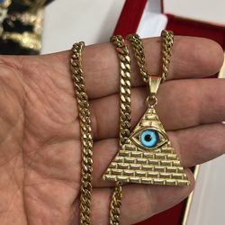 14k Gold Plated Cuban Links Big Necklace And Pendant $45Fort Lauderdale, FL