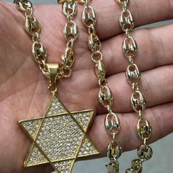 14k Gold Plated Puffy GG Links Big Necklace And Cz Star Of David Pendant $75Fort Lauderdale, FL