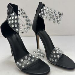 black stiletto heels featuring clear PVC straps adorned with rhinestones size 8.5 (39)$18Miami, FL