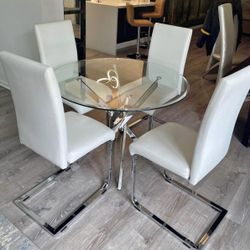 5pc Dining Set Glass Table Gray White Chairs $52Miami, FL