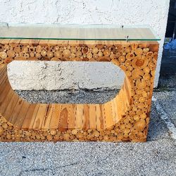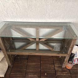 Modern Natural Teak Wood Console Table With Glass Top.$600Fort Lauderdale, FL