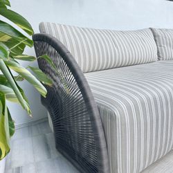 RH 96" Outdoor Pavona Sofa w/ Water Repellent Gray Striped Cushions and Covers$5,500Miami Beach, FL