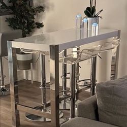 NEW WHITE LACQUER WITH CROME LEGS DINING TABLE WITH 4 ADJUSTSBLE ACRYLIC STOOL ONLY THE LACQUER TABLE COST $1000 IN ROOMS TO GO WILL SELL FOR $450$450Miami, FL