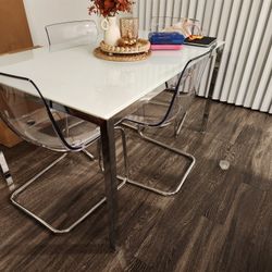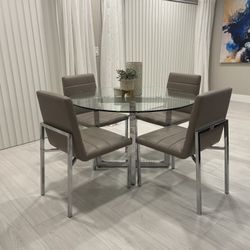 Glass/Chrome Dinning Table/4 Taupe dinning Chairs$399Pompano Beach, FL