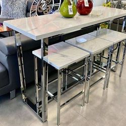 High Table Set 3 Stools New Marble Design 4 Pcs Set Dining in box $399$399Fort Lauderdale, FL