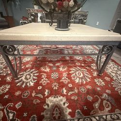 PRICE DROP! Scrollwork Design Wrought Iron Coffee Table w/ Stone Top, Square, Cream Color and Silver$20Pembroke Pines, FL
