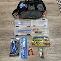 Offshore angler water proof tackle bag + accessories $60Miami, FL