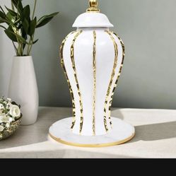 White Ceramic Ginger Jar Vase with Gold Decorative Design ( 18.5” H) “New” With Flowers Included. (Fake Pink Flowers)$40Hialeah, FL