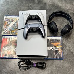 Sony PlayStation 5 Disc Edition 1TB White Console Gaming System CFI-2015 two Controller Cords headphones COD 6 GTA COD 3$580Pompano Beach, FL