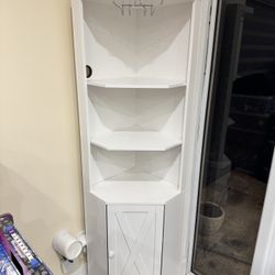 White Corner Triangular Cabinet With Shelves Doors And Wine Glass Holder$50Miami, FL