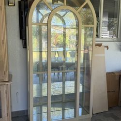 hermosa vitrina alta estilo clásico con puertas de vidrio y diseño arqueado, ideal para exhibir copas, vajilla, trofeos, figuras o decoración$100Miami, FL