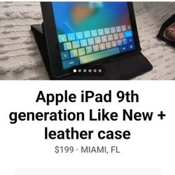 Beautiful Apple iPad 9th generation Like New. This is barely used. NOT REFURBISHED HED. ORIGINAL. Battery lasts long. (The refurbished is crap, batter$199Miami, FL