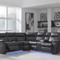Leather Power Reclining Sectional Sofa Black / Seccional de Piel Eléctrico Negro – Miami$2,549Miami, FL