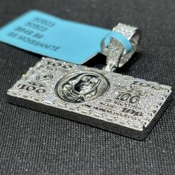 NEW 100 Dollar Bill Pendant Simple Moissanite SS 2.04C.T VS.D Color$350Miami, FL