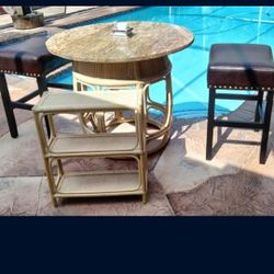 😍 Granite Top Tiki Bamboo Outdoor Furniture Set Table W/ Stools & Matching End Table Pool Deck Pat$199Pompano Beach, FL