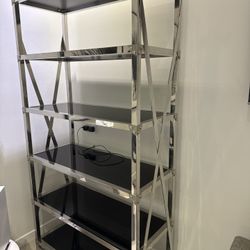 Z Gallerie Stainless Steel 5 Black Glass Shelves Flight Bookshelf$700Miami Beach, FL
