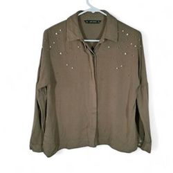 Zara Blouse Top Size large Green 3/4 Sleeve Embellished Button Up Shirt$15Miami, FL