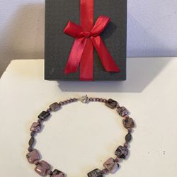 NEW 17” Rhodonite Necklace w/ Square / Block-Cut Beads & Silver-Toned Accents Rose Pink & Black $35Fort Lauderdale, FL