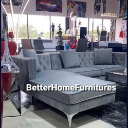 Glamorous Gray Velvet Sectional Sofa with Sparkling Accents โ Perfect for a Luxurious Living Space! โจ๐๏ธ Visit us at BetterHomeFurnitures.com for More$899Fort Lauderdale, FL